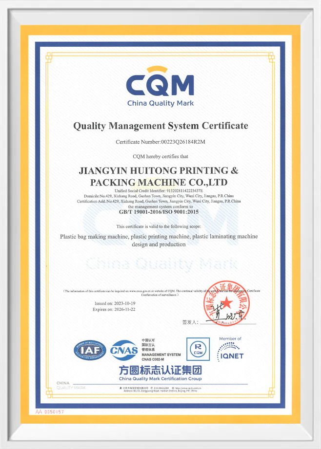 Jiangyin Huitong Verpackungsmaschinen Co., Ltd. was established in 1996. It is located in the core area of the Yangtze River Delta Gushan Town, Jiangyin City, and covers an area of more than 100 acres. Professional produce a series of international advanced flexible packaging machinery. Now, Huitong has more than 500 employees. Among them, more than 50 are research and development inventors. The Mission of “facing to the world by innovation” leads Huitong to vigorously focus on research and development of new products. Huitong now has more than 400 patents, including 43 invention patents. Was rated “ High-tech Enterprise in Jiangsu Province”.