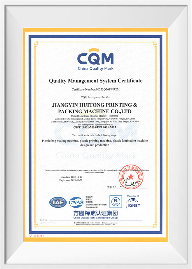 Jiangyin Huitong Verpackungsmaschinen Co., Ltd. was established in 1996. It is located in the core area of the Yangtze River Delta Gushan Town, Jiangyin City, and covers an area of more than 100 acres. Professional produce a series of international advanced flexible packaging machinery. Now, Huitong has more than 500 employees. Among them, more than 50 are research and development inventors. The Mission of “facing to the world by innovation” leads Huitong to vigorously focus on research and development of new products. Huitong now has more than 400 patents, including 43 invention patents. Was rated “ High-tech Enterprise in Jiangsu Province”.